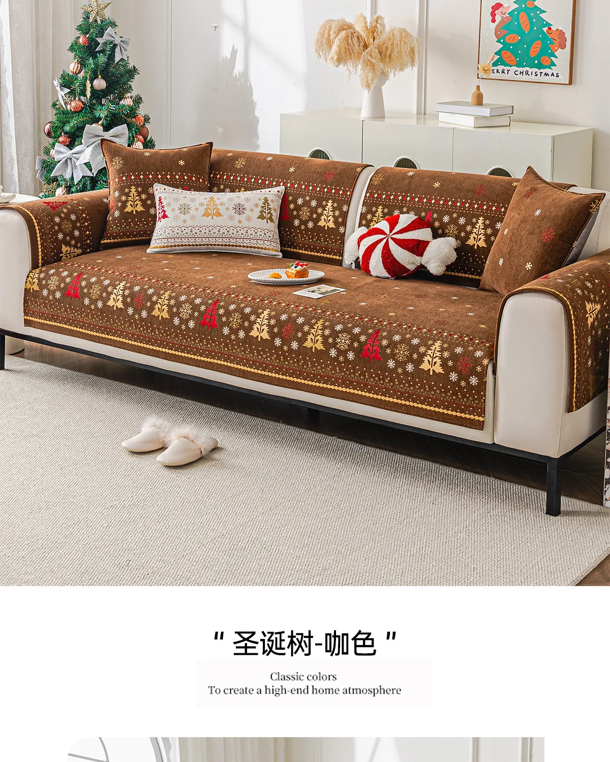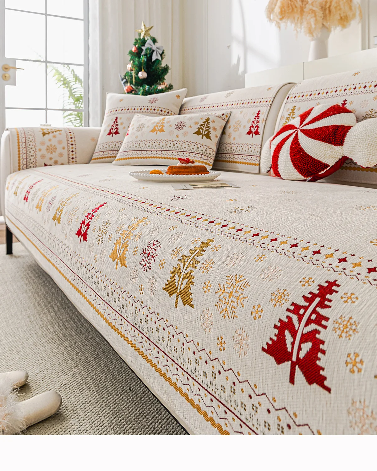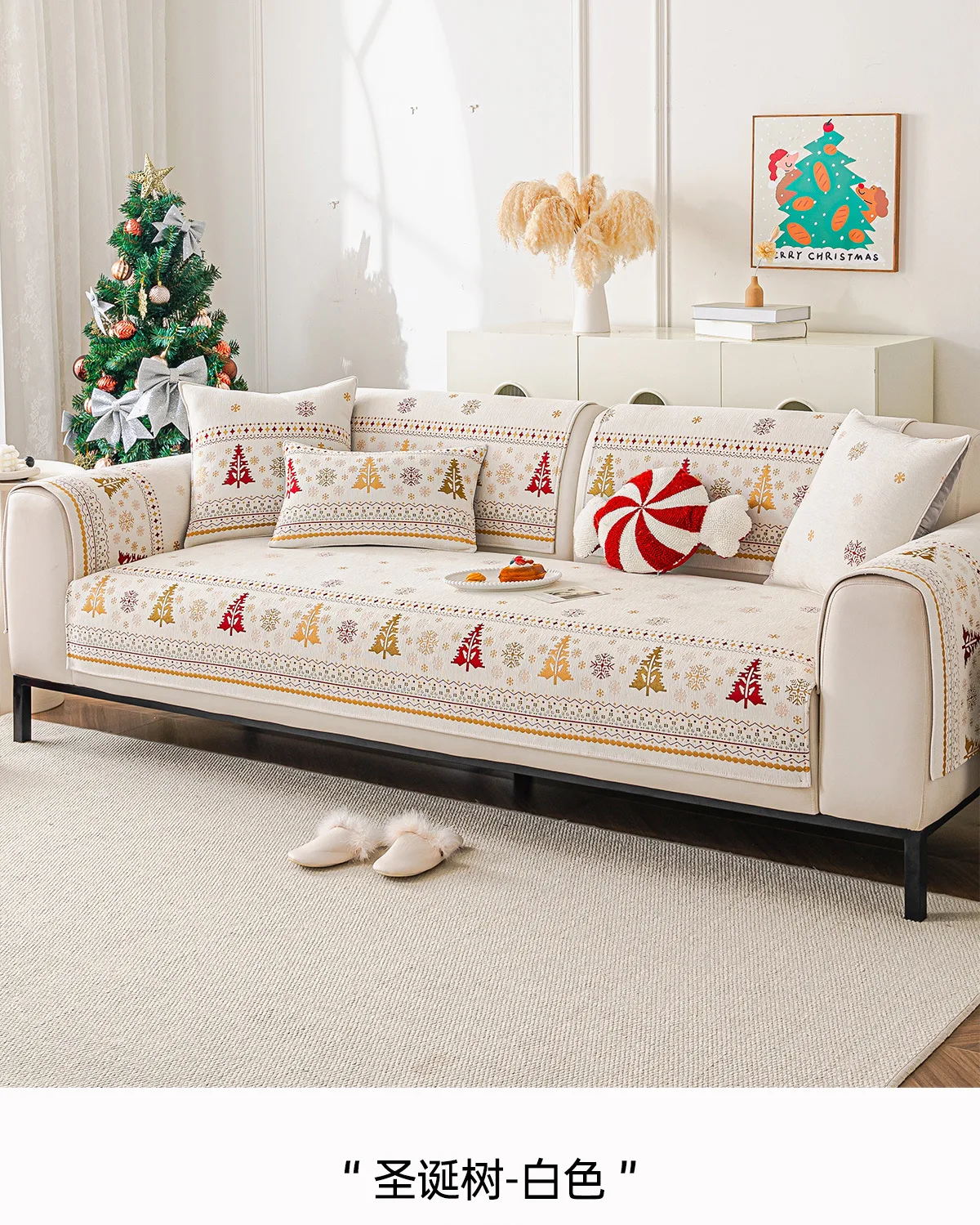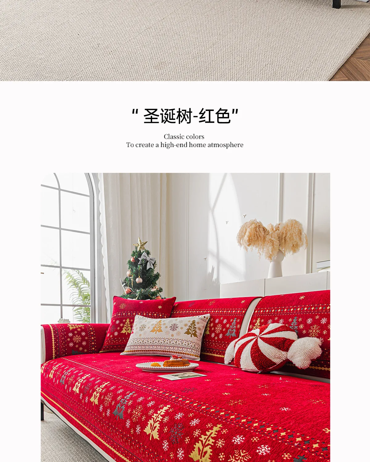 2025 Christmas Tree Sofa Cushion Fixed Anti Slip Nordic Light Luxury Style Sofa Cover Cloth Towel Suitable for All Seasons Soft