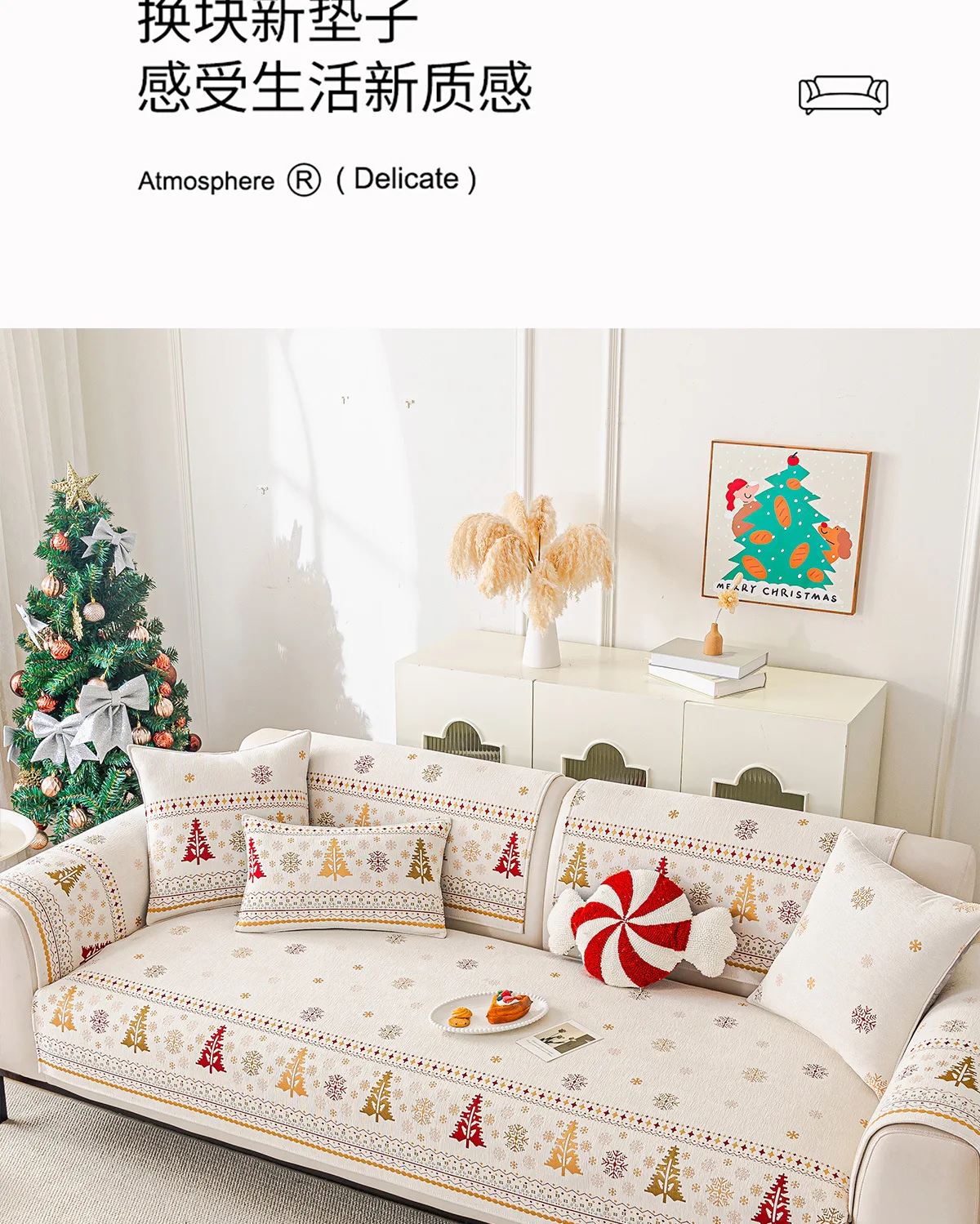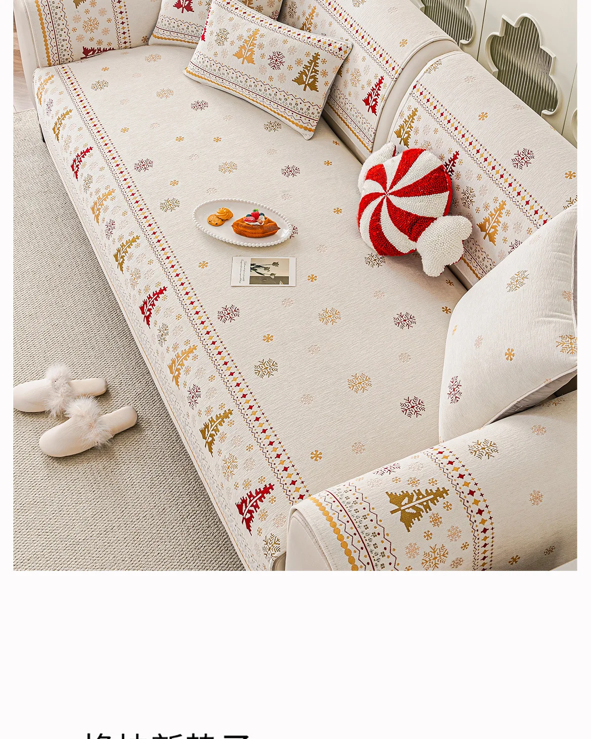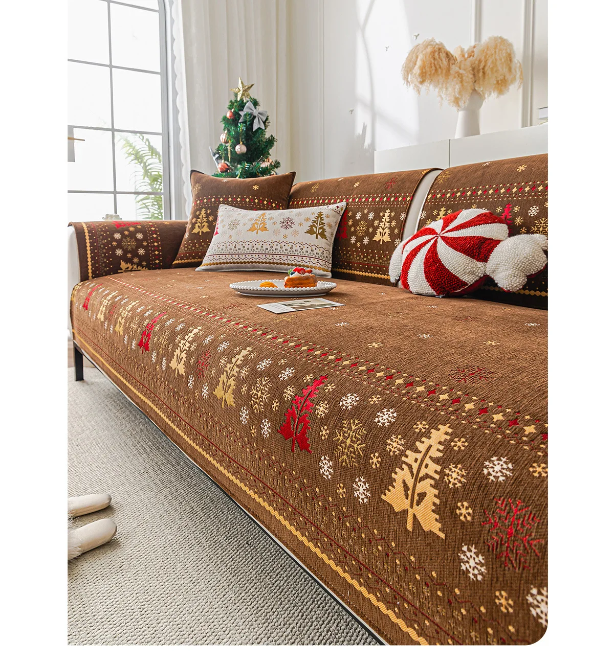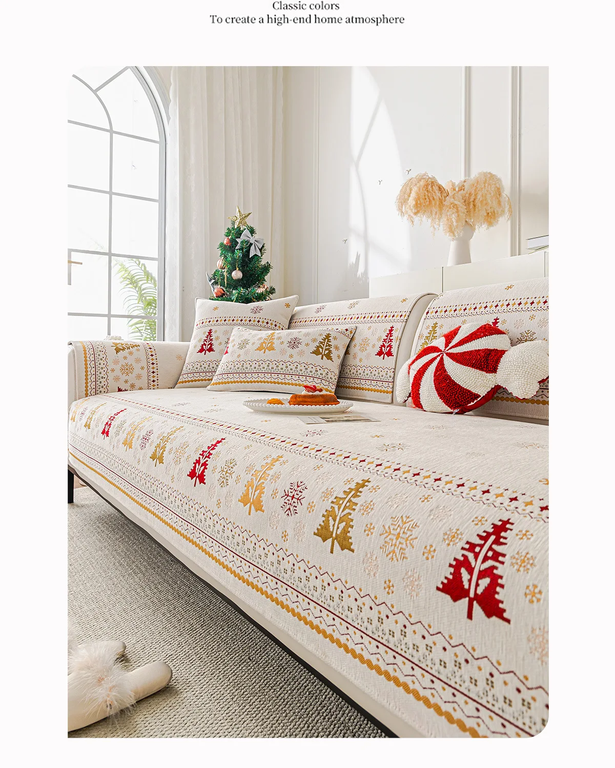 2025 Christmas Tree Sofa Cushion Fixed Anti Slip Nordic Light Luxury Style Sofa Cover Cloth Towel Suitable for All Seasons Soft