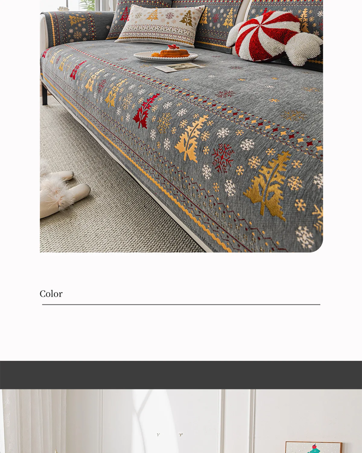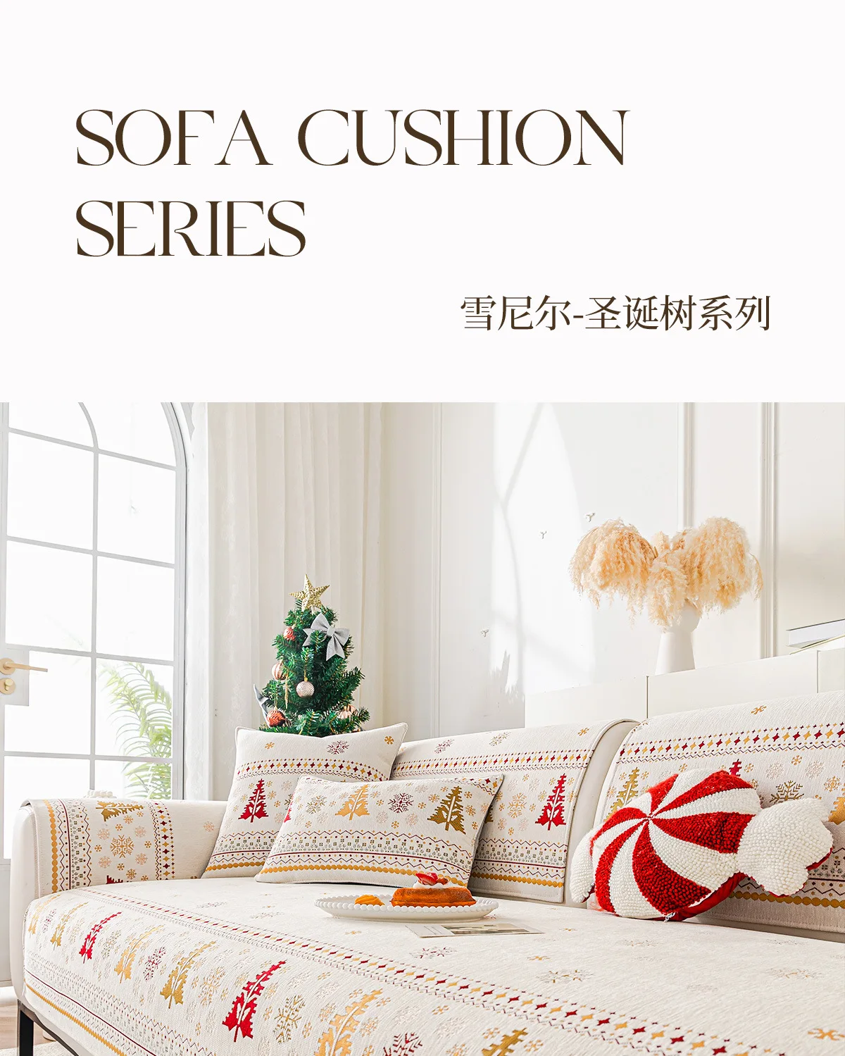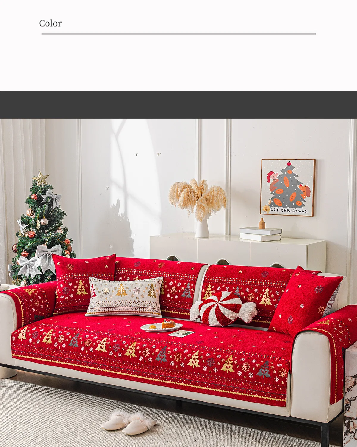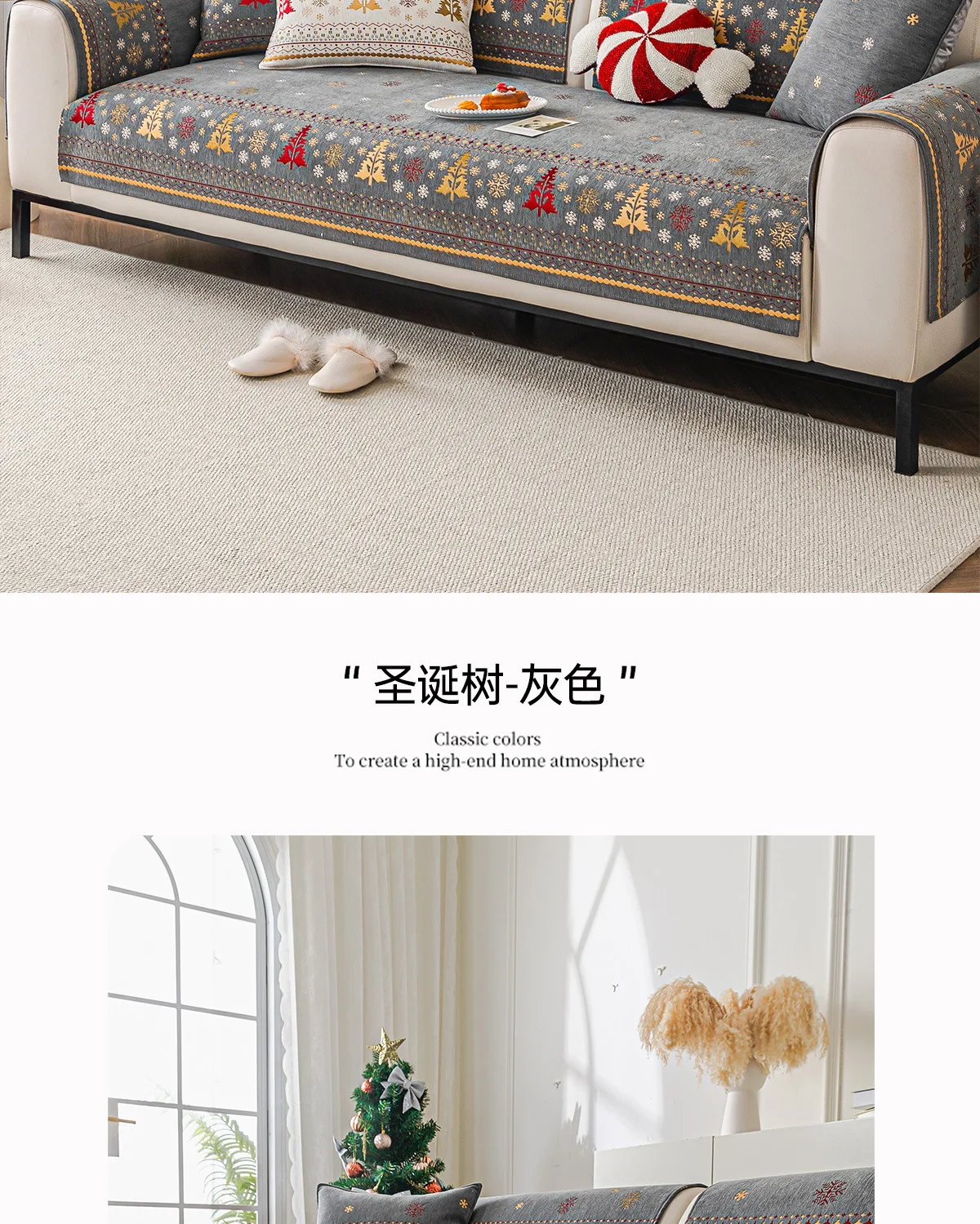 2025 Christmas Tree Sofa Cushion Fixed Anti Slip Nordic Light Luxury Style Sofa Cover Cloth Towel Suitable for All Seasons Soft