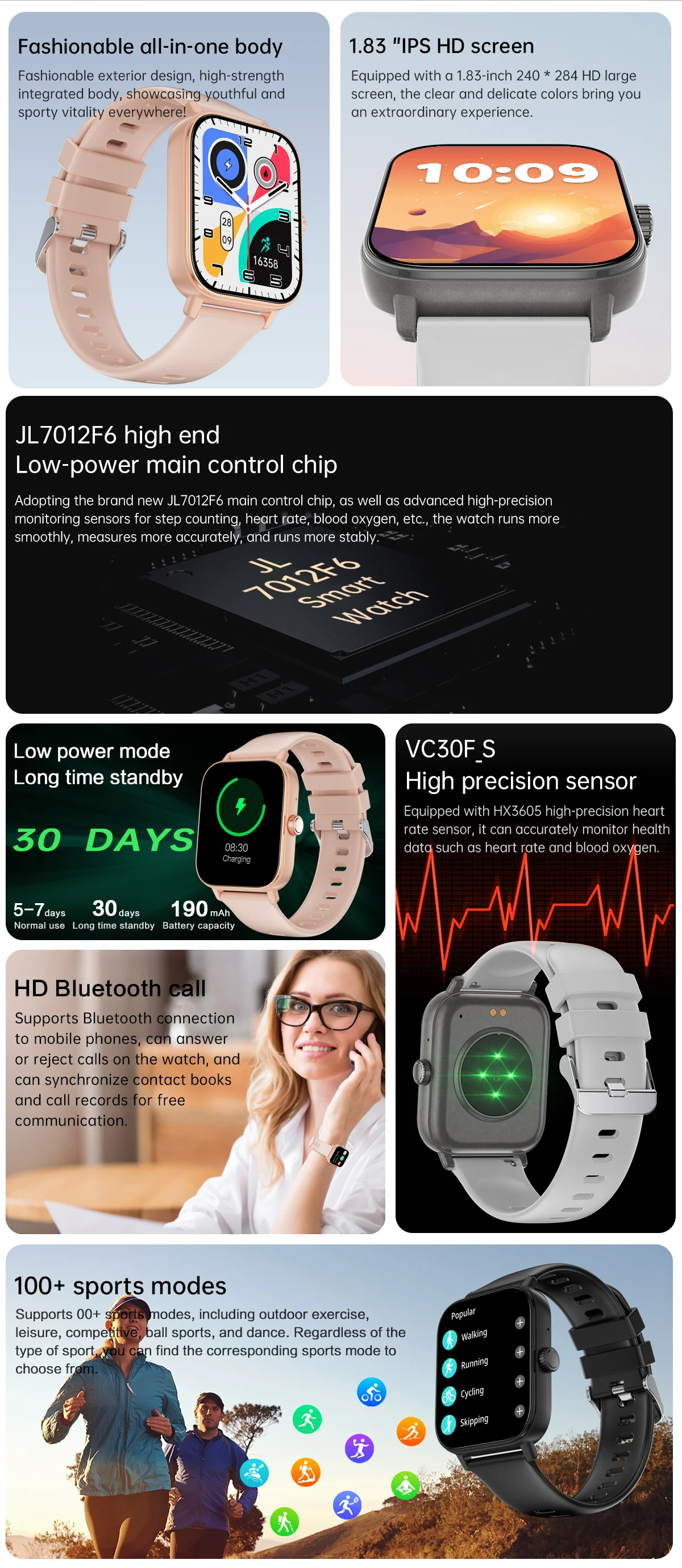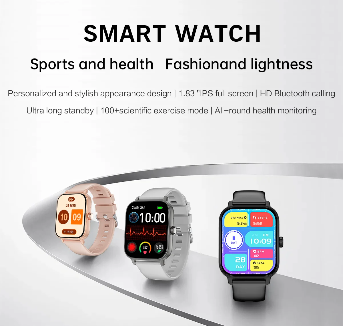 2025 Ultra Smart Watch 1.83 Inch Android IOS Waterproof Sports Fitness Tracker Heart Rate Sleep Monitor Men's/Women's Silicone