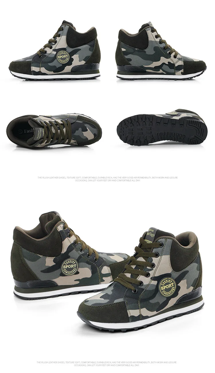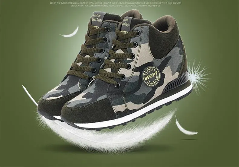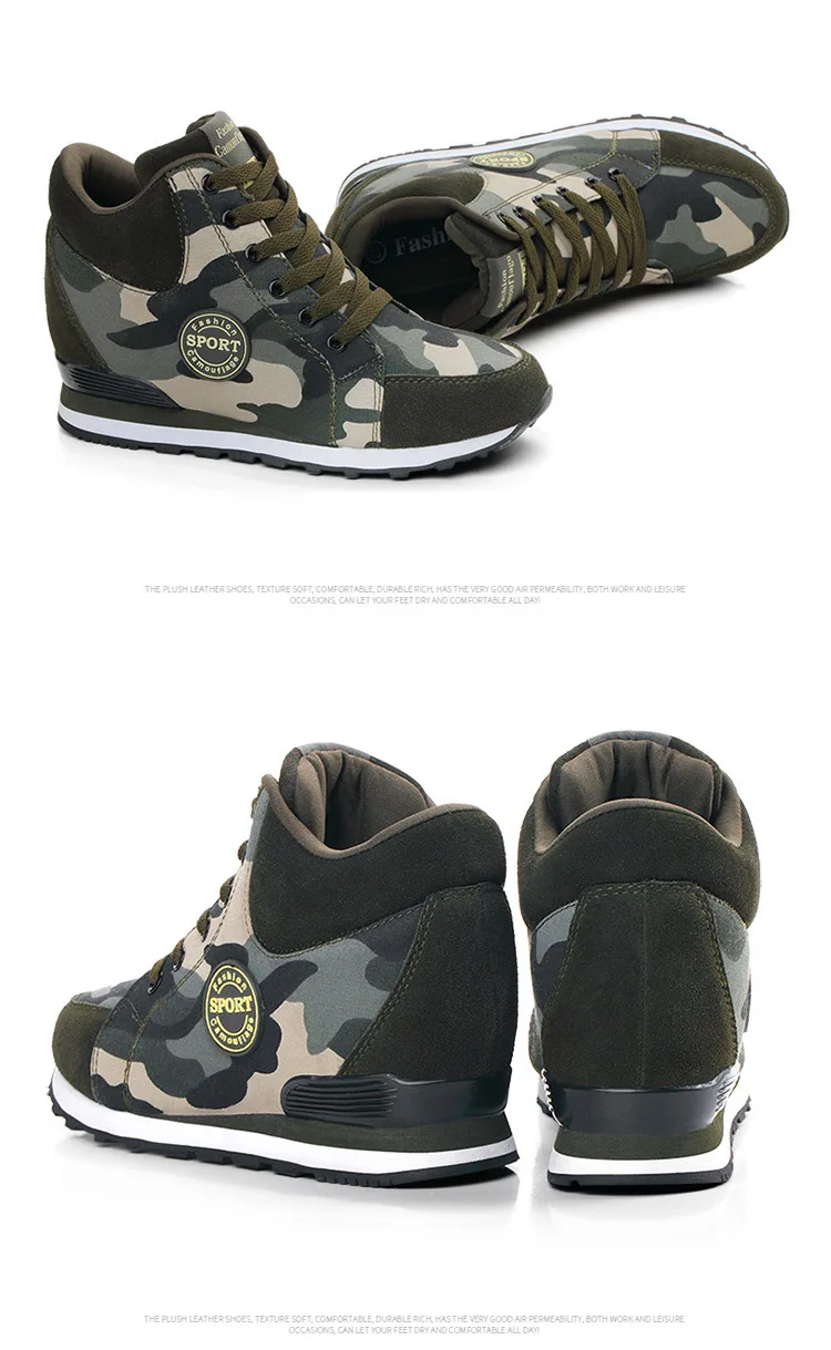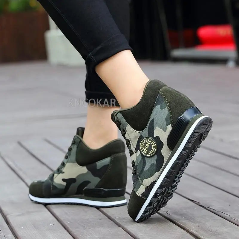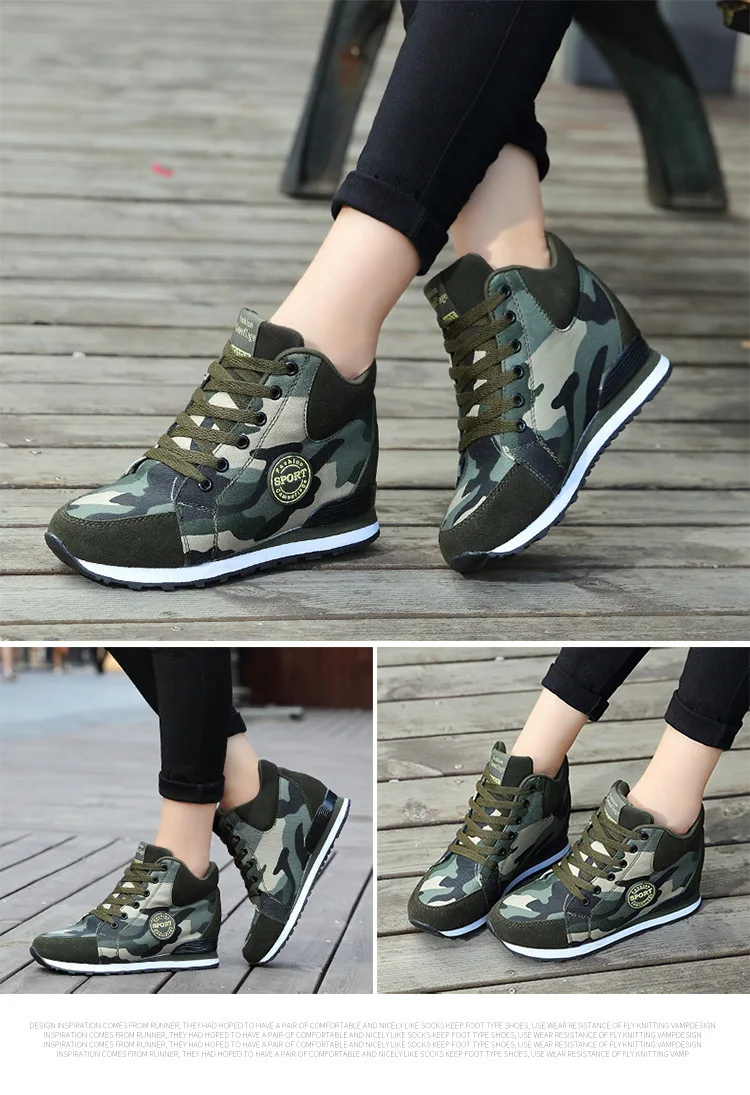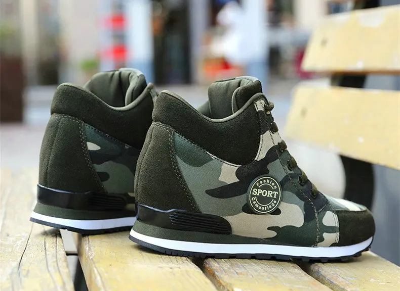 Spring High Top Wedge Platform Sneakers Women Casual Shoes Hidden Heels Ladies Sneakers Camouflage Basket Femme 42